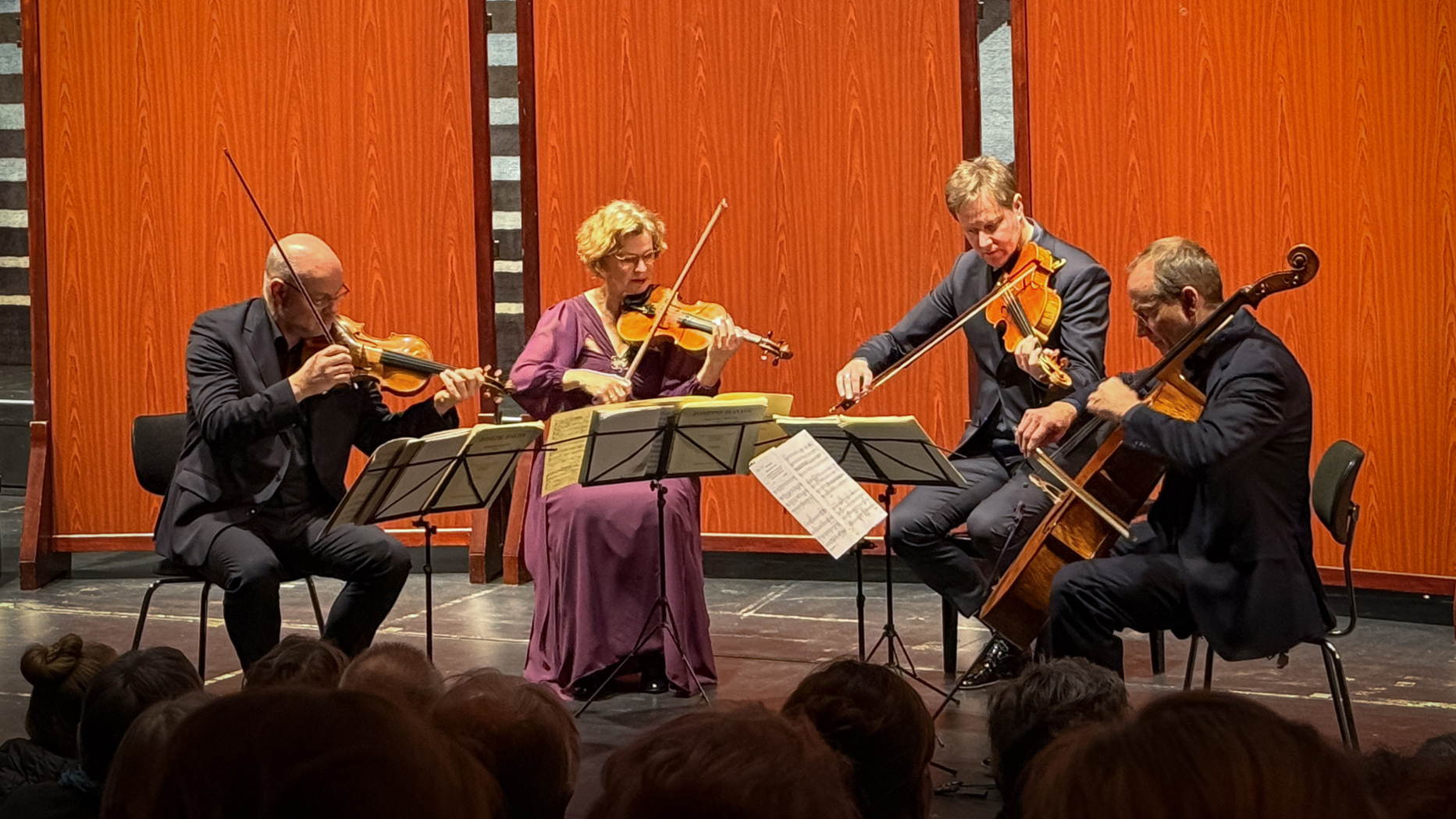 Der Titel „György Kurtág zum 100. Geburtstag“ beschrieb den Kern des dritten Konzerts der Klassik-Reihe am 25. Januar 2026. Das Mandelring Quartett brachte zwei Werke des Ungarn zu Gehör: Six Moments Musicaux op. 44 und die 12 Mikroludien für Streichquartett „Hommage à Mihály András“. Eingerahmt wurden die beiden modernen Kompositionen durch Josef Haydns Streichquartett h-Moll op. 33/1 und – krönender Abschluß – Johannes Brahms‘ Streichquartett B-Dur op. 67. Das Mandelring Quartett bot den Zuhörern diesmal ein breites Spektrum des Programms, wie immer grandios und mit höchster Präzision vorgetragen.